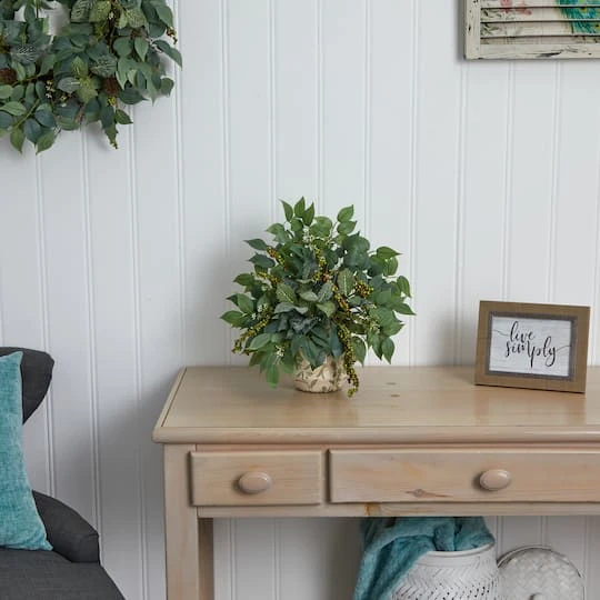 The lifelike dark and green berries of this artificial mixed ficus and fittonia plant are mingled in the rich, light green leaves, all bursting from the included printed vase. At only 13 inches tall, you can easily settle this on your work desk or on a low bookshelf in your bedroom next to your favorite classic books.
