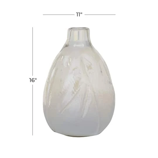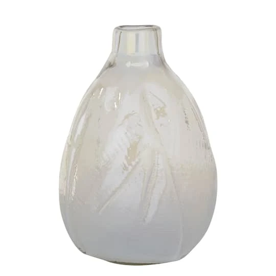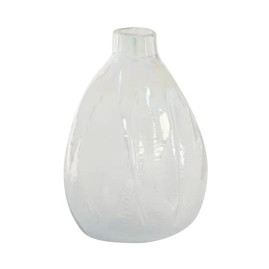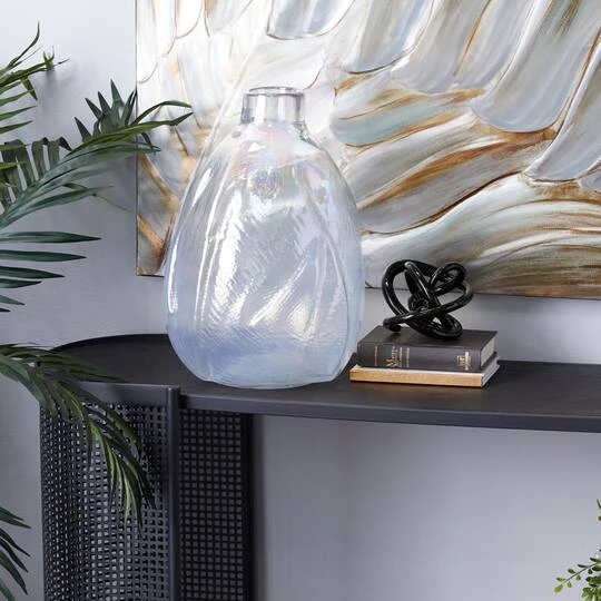 This is a semi-opaque glass vase with a smooth exterior and an old water bottle silhouette that you can display in contemporary interior settings. Put flowers in it, or use it as stand-alone tabletop decorations on any surface space. It also captures attention on top of wall dressers, on shelves, and next to wall mirrors.