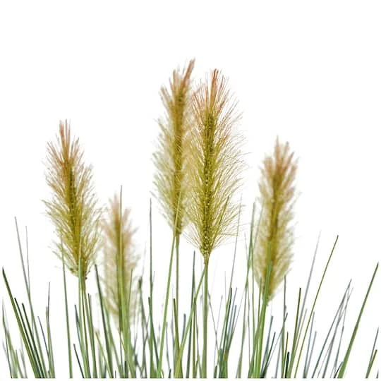 Made from high-quality plastic, this artificial plant offers both durability and a realistic appearance, mimicking the texture and color of natural foliage. Contemporary artificial plant décor features green and yellow grass with a matte white pot. Stylish faux plant showcases a realistic design that brings a touch of naturalistic greenery to your interior without the added hassle of maintenance.