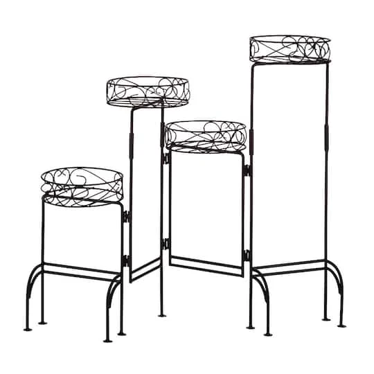 This plant stand is perfect for holding your favorite potted plants or trinkets of any kind, both indoors and outdoors. Place in a sunroom, patio, deck, or porch to add stylish home décor and greenery to your space. To clean your plant décor, wipe with a damp cloth as needed. Form meets function in this versatile design! This unique screen has four graduated-height panels, each topped with a secure plant shelf; foldable to fit any area.