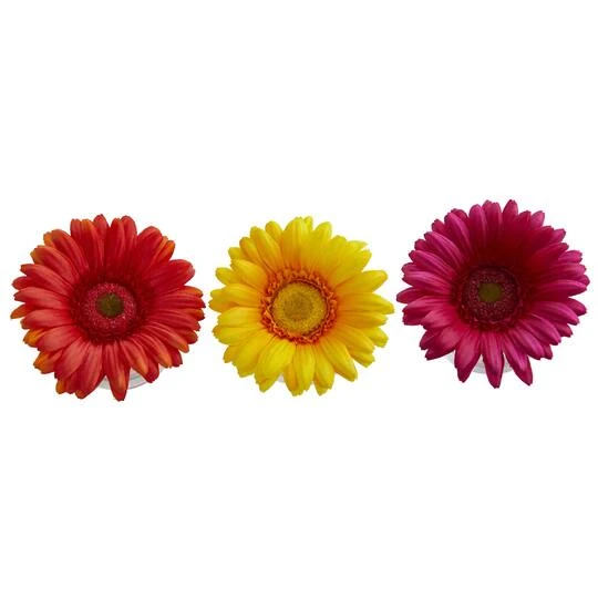 This set of artificial gerbera daisies is a perfect addition to a window sill. Their small size makes them a perfect complement to any décor! The vases are completed with a faux water look.
