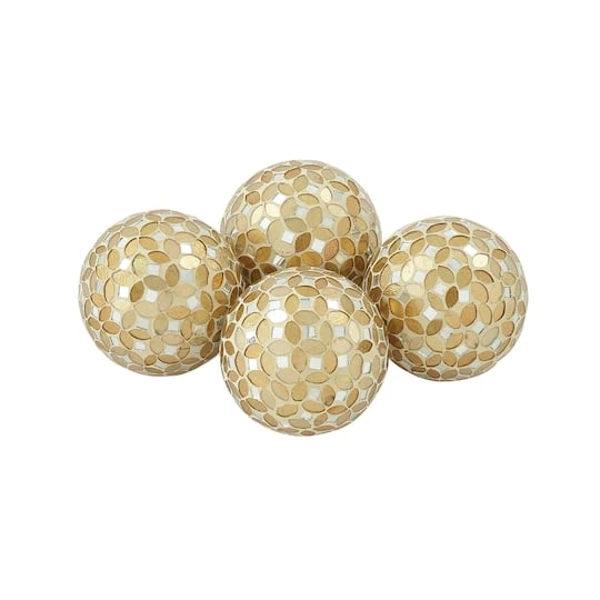 Make a big impression with the use of small décor pieces. This set of four mosaic patterned orbs will add shine and shimmer to your living space. Use these decorative orbs to fill an empty vase, bowl or basket or on a surface in need of some extra glamour.