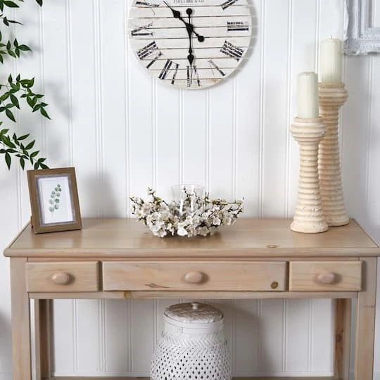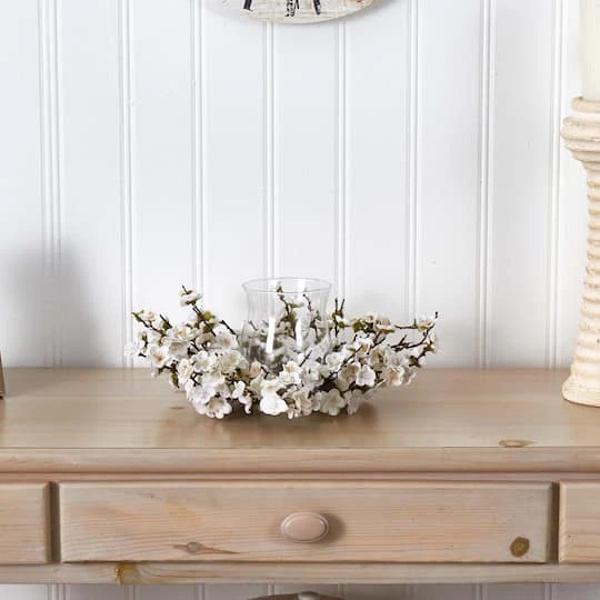 Various thin stems branch out to reveal small white blooms on this beautiful artificial plum blossom candelabrum. The simple design makes it easy to blend in with any arrangement on a night stand, dresser, or other bedroom furniture.