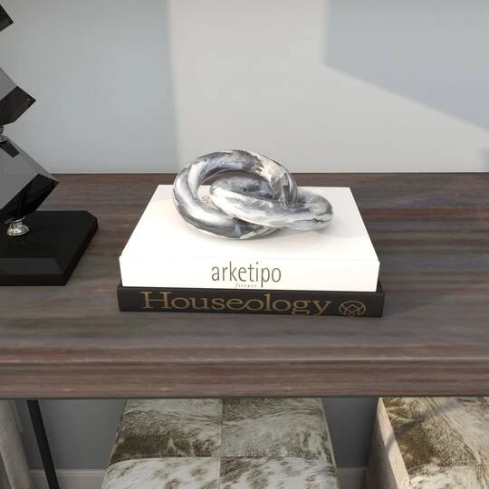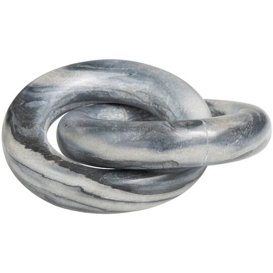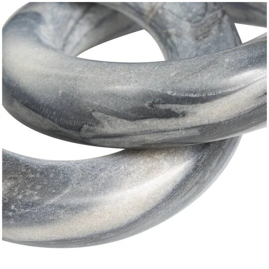 Inspired by sleek elegance and clean lines, a minimalistic design offers effortless luxury with monochromatic tones and bold, angular structures. Decorative chain sculpture is made of solid marble for a sturdy and lasting design. Modern table sculpture showcases a polished gray and black marble finish for a sleek display.
