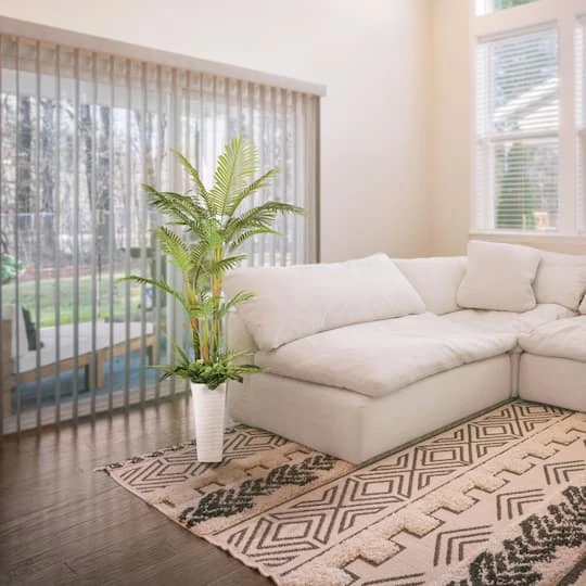 This artificial areca palm tree beautifully captures a stimulating essence and brightness from the outdoors into any space within your home or office. It is carefully designed with the appearance of a real-life foliage.