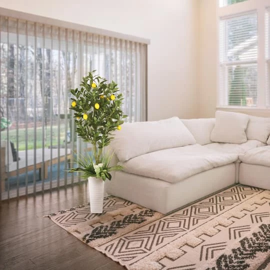 This artificial lemon tree beautifully captures a refreshing essence and brightness from the outdoors into any space within your home or office. It is carefully designed with the appearance of a real-life foliage.