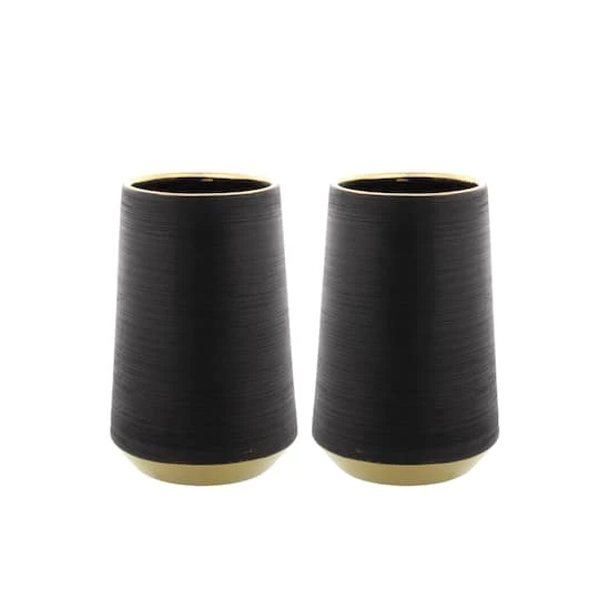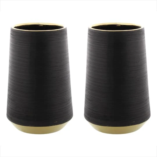 CosmoLiving By Cosmopolitan Set Of 2 Black Porcelain Glam Vase, 5″ X 8″