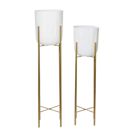 CosmoLiving By Cosmopolitan Set Of 2 White Metal Contemporary Planter, 39″, 46″
