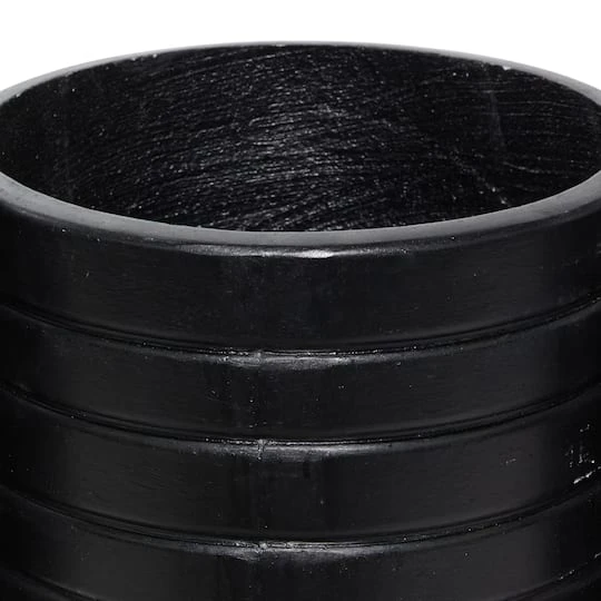 A smart chic style inspired living space knows how important mixing and matching is, especially when it comes to adding some greenery in your space. This round black fiber clay horizontal etched lines planter is up for that task. The fiber clay construction of this planter means toughness without sacrificing beauty and elegance thanks to its horizontal etched lines pattern design on the surface. The entire piece rests on a wooden tripod leg design with circular wooden legs in a light brown hue. This planter set will bring a much-needed freshness with indoor plants to your living room, dining room, home office or entry way. Ships in 1 carton. Suitable for indoor and outdoor use. No drainage holes. Each set includes with 3 planters. Contemporary design.