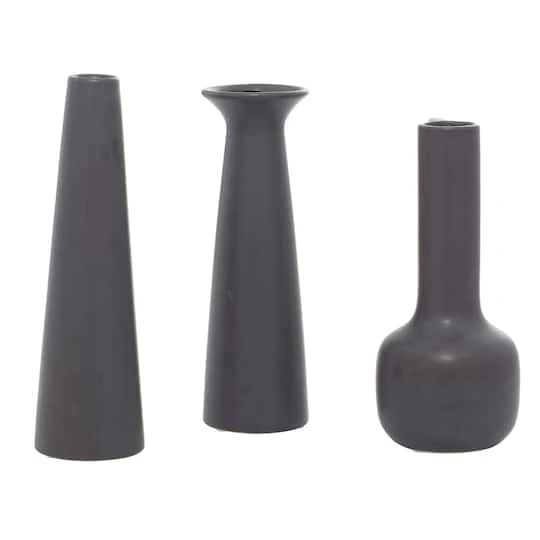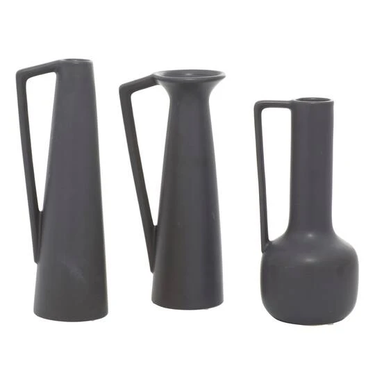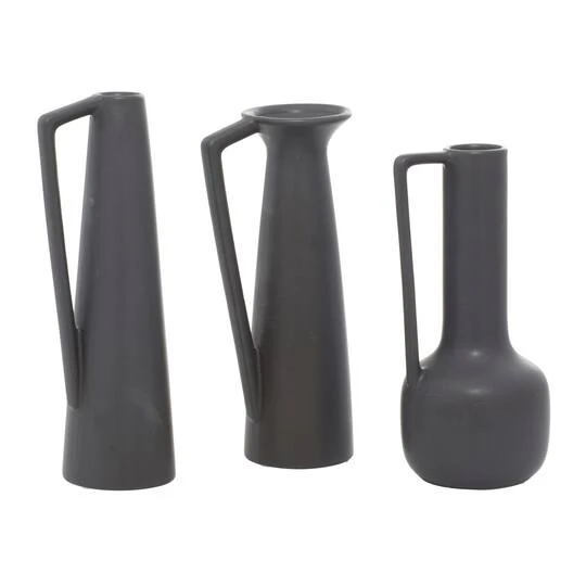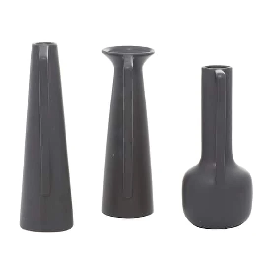CosmoLiving By Cosmopolitan Set Of 3 Dark Gray Ceramic Modern Vase, 12″, 13″, 11″