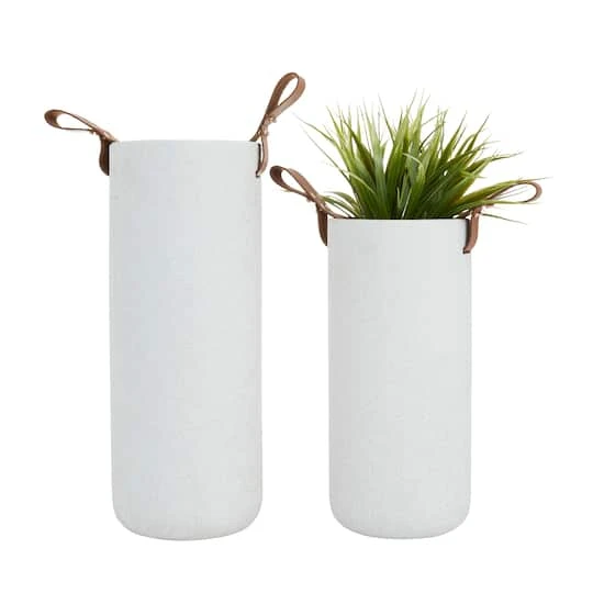 This minimalist set of white ceramic vases can be styled up with pastel or bright colored long stem floral arrangements This vase is perfect for displaying orbs filler and twigs, as well as filling up any negative space against an open surface space. Create depth and form onto your space by displaying this beautifully crafted vase. This item comes shipped in one carton. This item comes as a set of 2. Contemporary style. Suitable for indoor use.