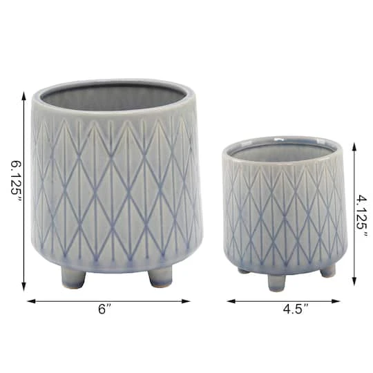 Meet Stumpy! Place this diamond line stumpy leg planter anywhere in your home to create an indoor oasis. Hand-crafted by artisans, this ceramic planter with stumpy legs will help upgrade your plant game in style. Made of ceramic and painted blue with a glossy finish, this tabletop planter will add a bit of chic nature to your living space. This unique set will help you start your own little garden indoors!