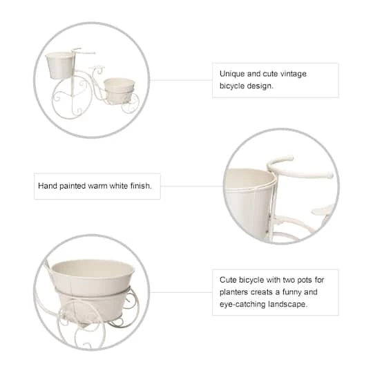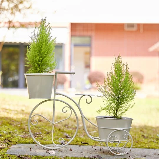 This cute and funny vintage bicycle plant stand will add a nice touch of a whimsy and dash of natural beauty to your home, porch, garden or patio. Just place on your favorite flowers or greenery and you will enjoy an interesting and eye-catching landscape.