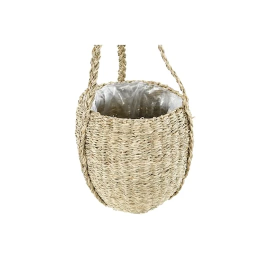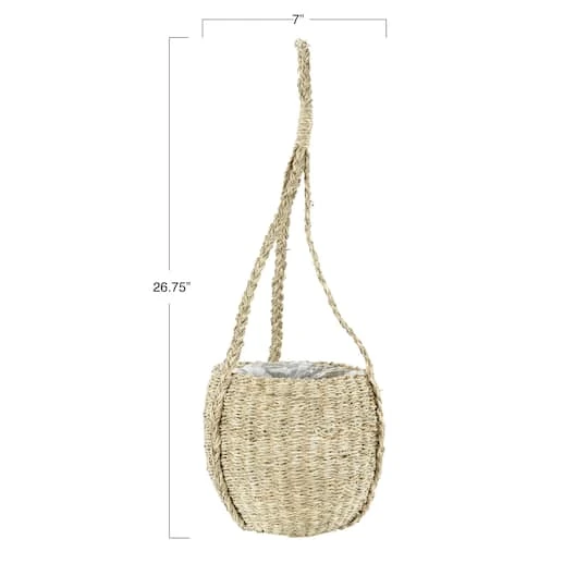 Add instant design to your room by placing a potted plant in this handwoven seagrass planter. It is beautifully designed for hanging and features a plastic lining. Hang it in a covered porch, kitchen, bathroom or sunroom.
