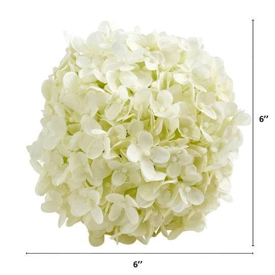 Add touches of femininity to your home décor with this set of four artificial hydrangea balls. Designed in perfectly shaped spheres composed of intricate little blooms, each 6” round arrangement is elegant whimsy at its finest. Great for incorporating in personalized wedding décor.