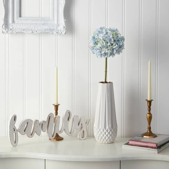 Fancy a fresh from the garden feel? Display beauty all year long with this hand-crafted feminine hydrangea artificial flower. Variegated detailed flowers in bloom, create a textured medley of foliage. Stemming 19”, seek the attention of all who lay eyes on her and house in your vase or create a beautiful wedding arrangement. Your stems will look beautiful for years to come; simply wipe clean with a soft dry cloth when needed.