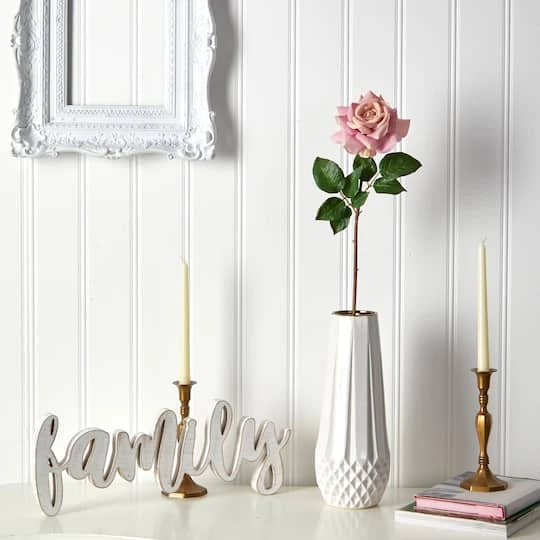Add country elegance throughout your home with this gorgeous set of artificial rose stems featuring a solitary blossom with delicate petals, frozen in mid-bloom on a 20″ stem. Available in a set of six, they’re the perfect accenting for everlasting beauty.