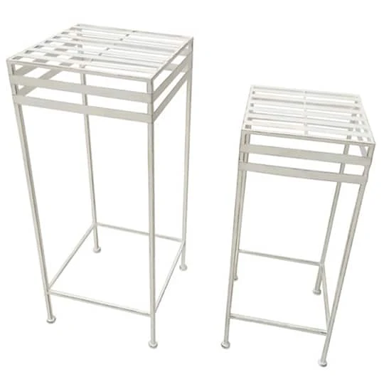 Sturdy and beautiful, these antique white plant stands are perfect for creating ornamental displays. Create a lovely display by placing your favorite potted plant on each iron stand.