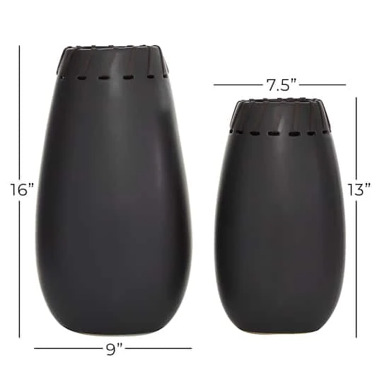 Set Of 2 Black Stoneware Modern Vase, 16″, 13″
