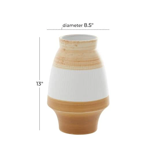 Tan Ceramic Coastal Style Vase, 13″ X 9″ X 9″