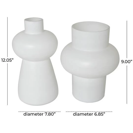 Inspired by sleek elegance and clean lines, a minimalistic design offers effortless luxury with monochromatic tones and bold, angular structures. Made of high-quality glass, this set of two vases feature a unique trumpet shape. This modern set of 2 white glass trumpet vases with a wide rounded centers is an elegant and stylish addition to your home décor. The glossy white finish adds a contemporary touch to any room. Use these vases to display fresh or artificial flowers, or as standalone pieces for an eye-catching look. Designed with felt or rubber stoppers at the base that prevent scratching furniture and table tops, as well as sliding around.